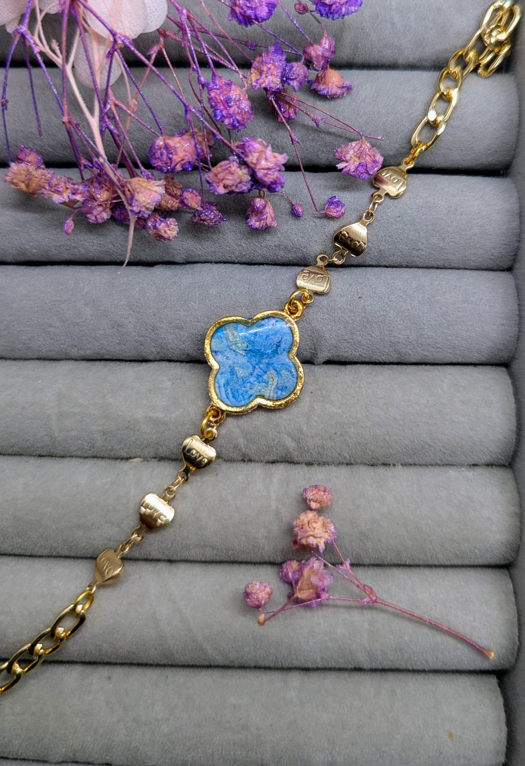 Elegant handmade bracelet featuring a gold-tone chain with Ferozi Resin. Lightweight, stylish, and perfect for everyday wear or gifting.