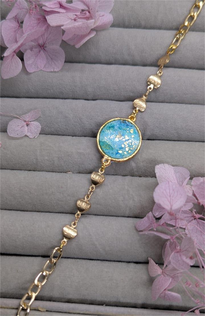 Elegant handmade bracelet featuring a gold-tone chain with Pink Resin . Lightweight, stylish, and perfect for everyday wear or gifting.