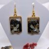 Handcrafted resin drop earrings with butterfly and floral details, finished in gold tones for an elegant, feminine look.