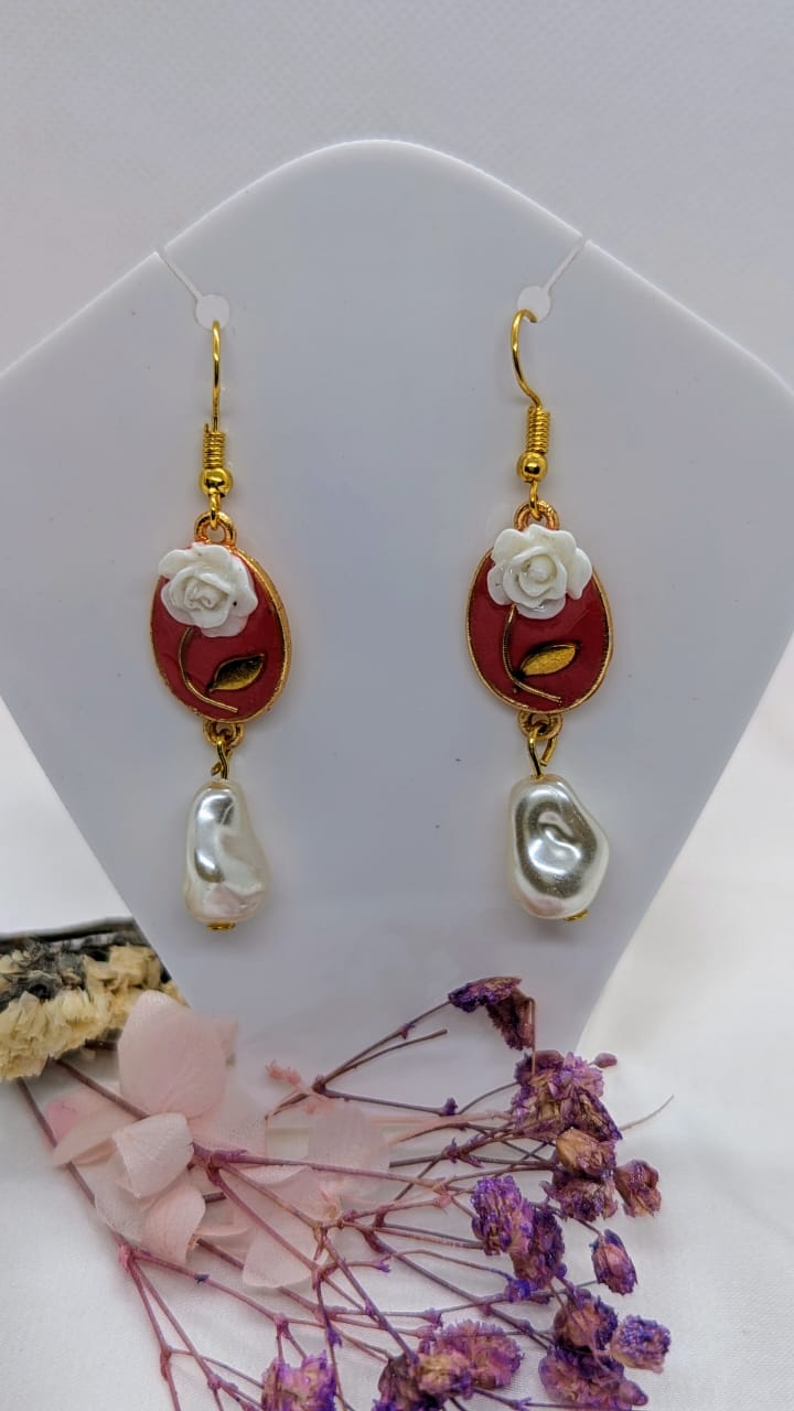 Handcrafted Red Resin & Floral Drop Earrings