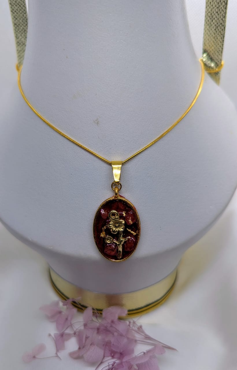 Add timeless charm to your jewelry collection with this handmade resin pendent with golden chain from sztuzkjewelry. Crafted with care, this delicate pendent features a gold-tone chain .