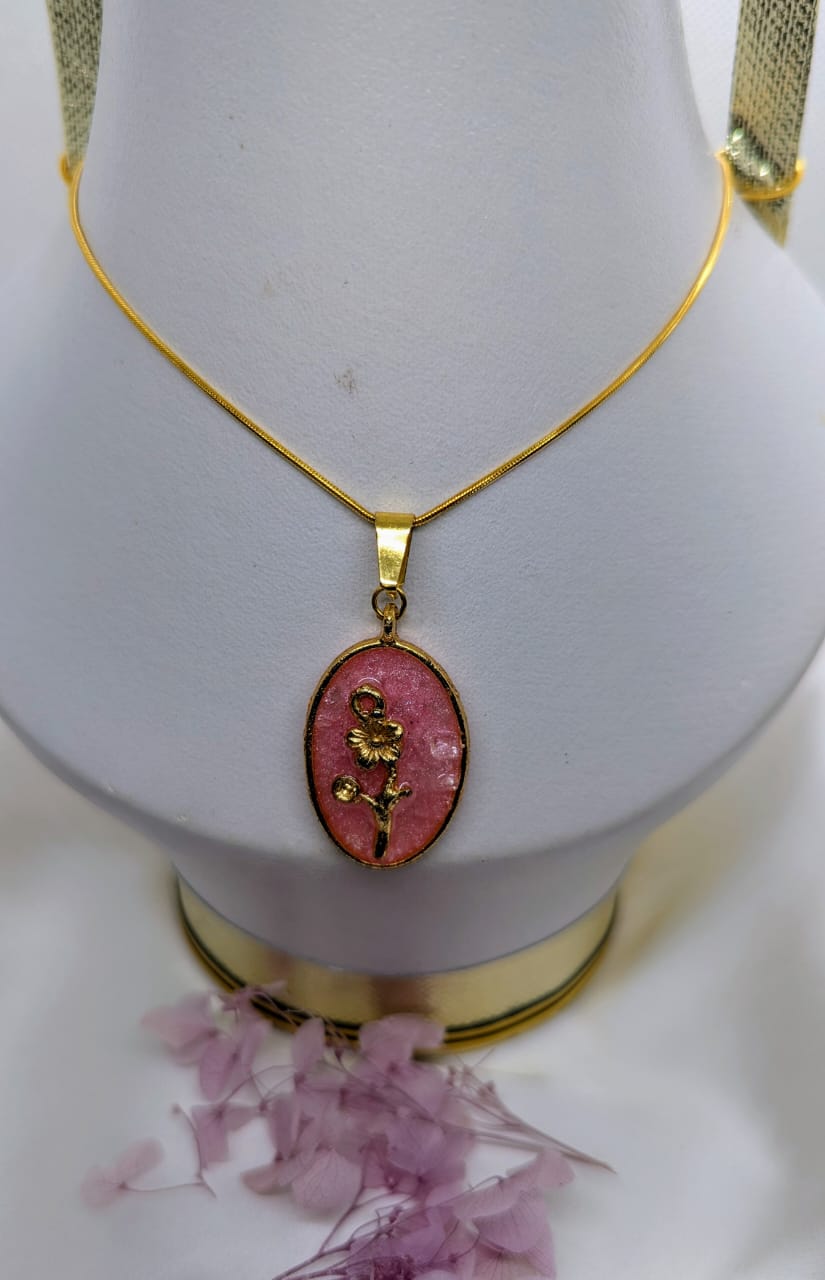 Add timeless charm to your jewelry collection with this handmade resin pendent with golden chain from sztuzkjewelry. Crafted with care, this delicate pendent features a gold-tone chain .