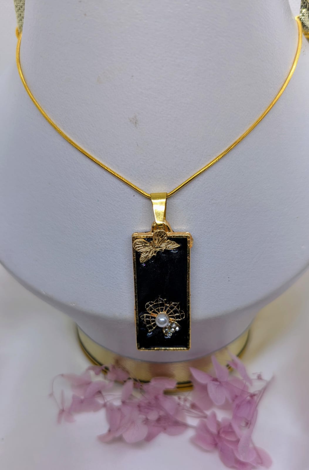 Add timeless charm to your jewelry collection with this handmade resin pendent with golden chain from sztuzkjewelry. Crafted with care, this delicate pendent features a gold-tone chain .