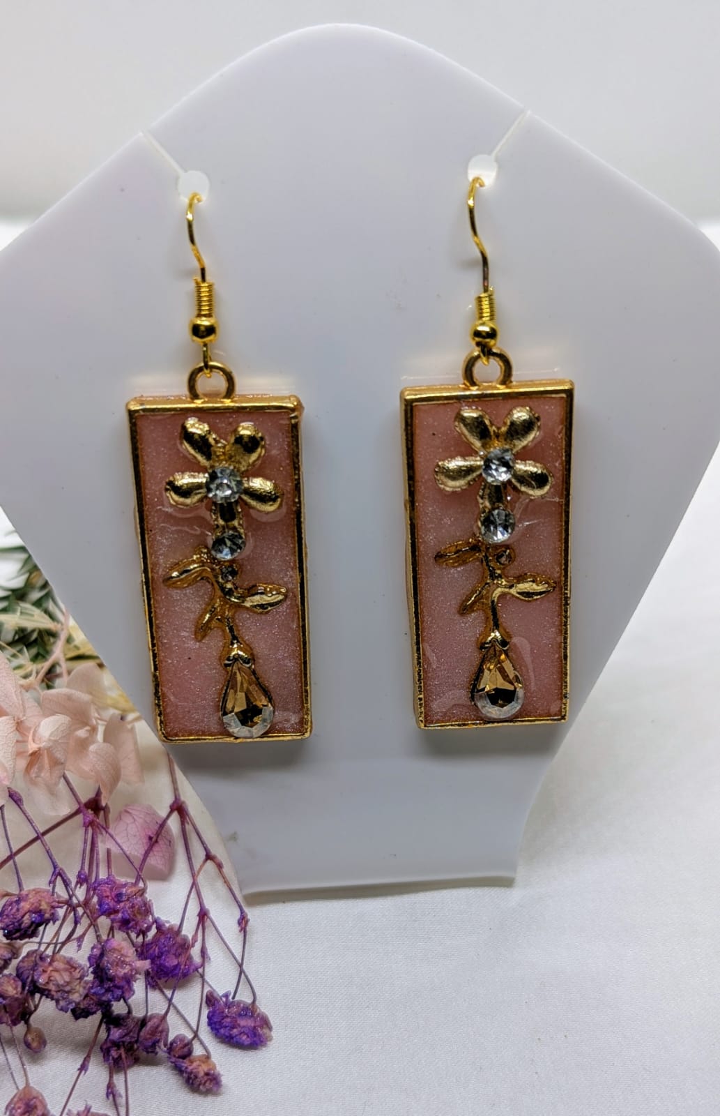 Handmade Resin Floral Drop Earrings – Elegant Rectangular Design